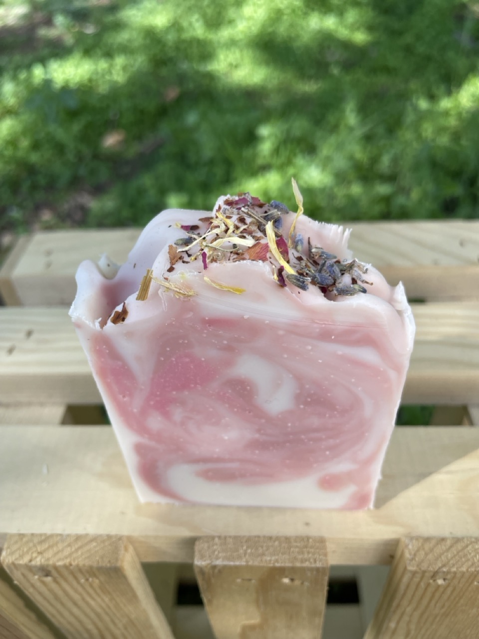 Unlike commercial soaps filled with hash chemicals and cheap fillers, we stay true to quality and integrity. Our soap is made with natural ingredients. We never use petroleum or detergents in our bars! Our bars effectively cleanse without stripping the skin of its natural oils. Get ready for a gently cleansing bar with lots of rich lather and fluffy bubbles.